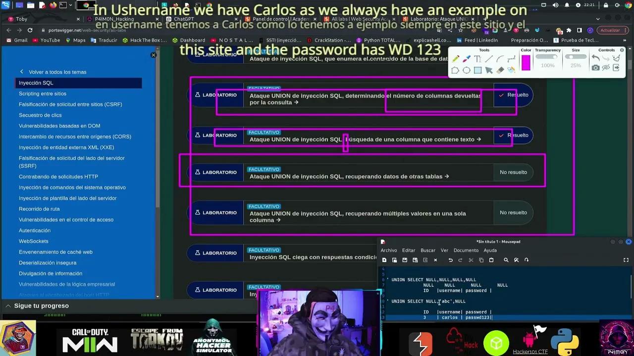 3 -♒️P4IM0N🟧PortsWigger🟧🤮BURPSUITE🤮Ataque UNION d inyección SQL, recuperación de datos d otras tabla