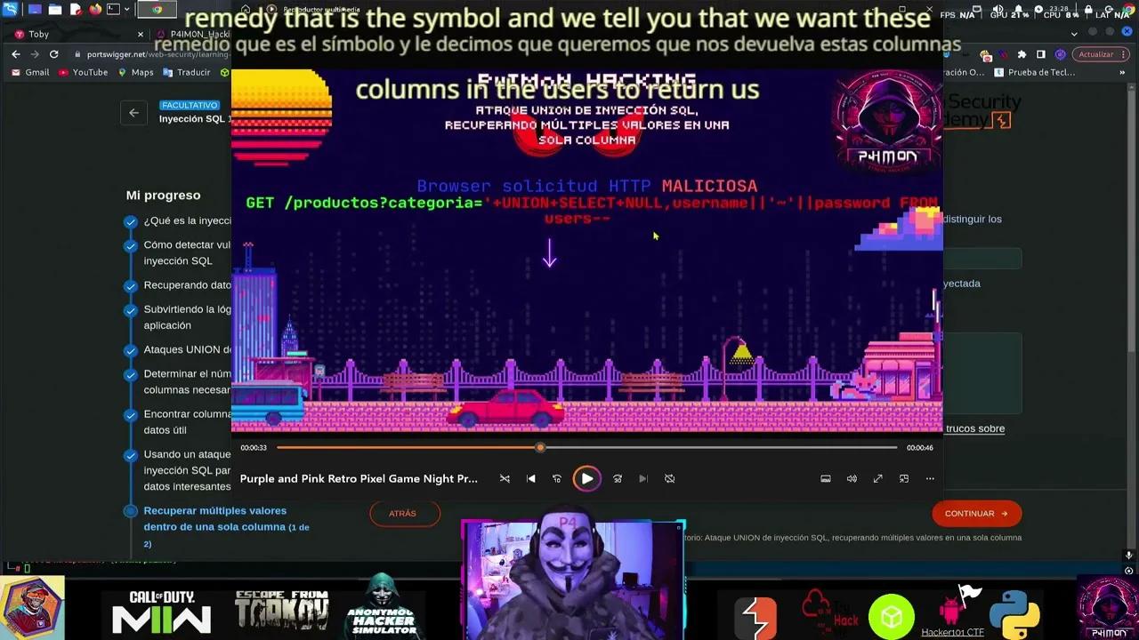 5 - ♒️ P4IM0N 🟧 PortsWigger 🟧🤮 BURPSUITE 🤮 Ataque UNION d inyección SQL, recuperando tipo y versión de DB